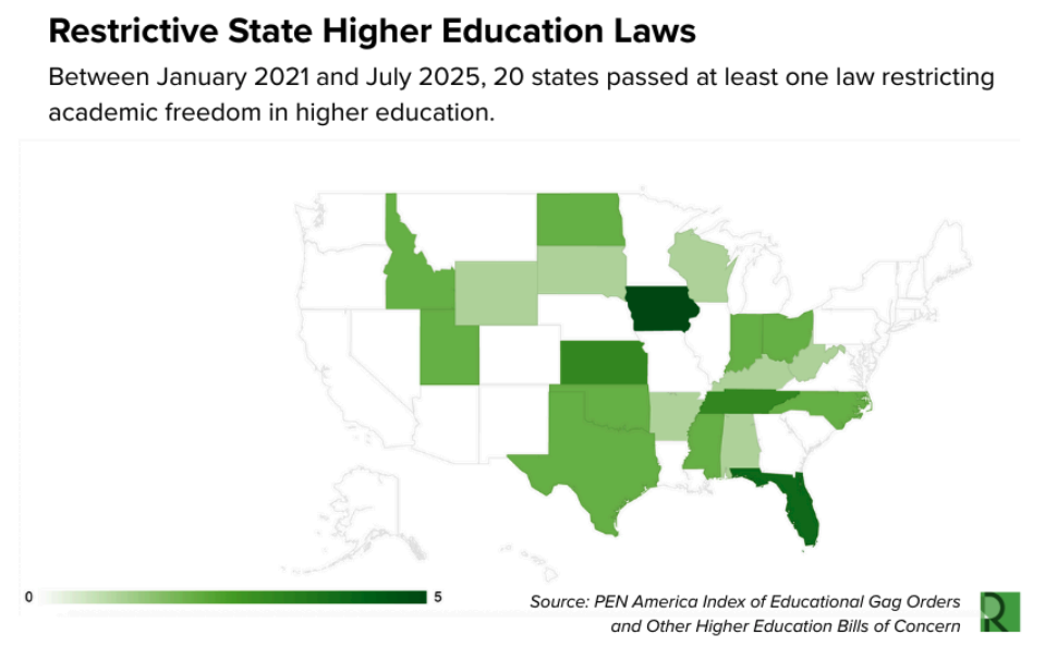 In recent years, higher education has been besieged by authoritarian political movements at both the federal and state level. The second Trump Administration’s efforts are surely familiar. It has been cutting research funding willy-nilly, screening grants with improvised algorithmically mediated ideological filters, and leveraging Title VI to fleece major universities of hundreds of millions of dollars and force them to submit to ongoing ideological supervision. For several years now, Republican-controlled state governments have been running their own experiments with ideological control: prohibiting diversity programs and the teaching of “divisive concepts,” weakening tenure, mandating “classical” education, and replacing administrators who resist. A bipartisan crackdown on students and faculty who speak too critically and openly about Israel’s crimes has been encouraged by state and federal elected officials, as well as by private university boards and militant Zionist organizations.